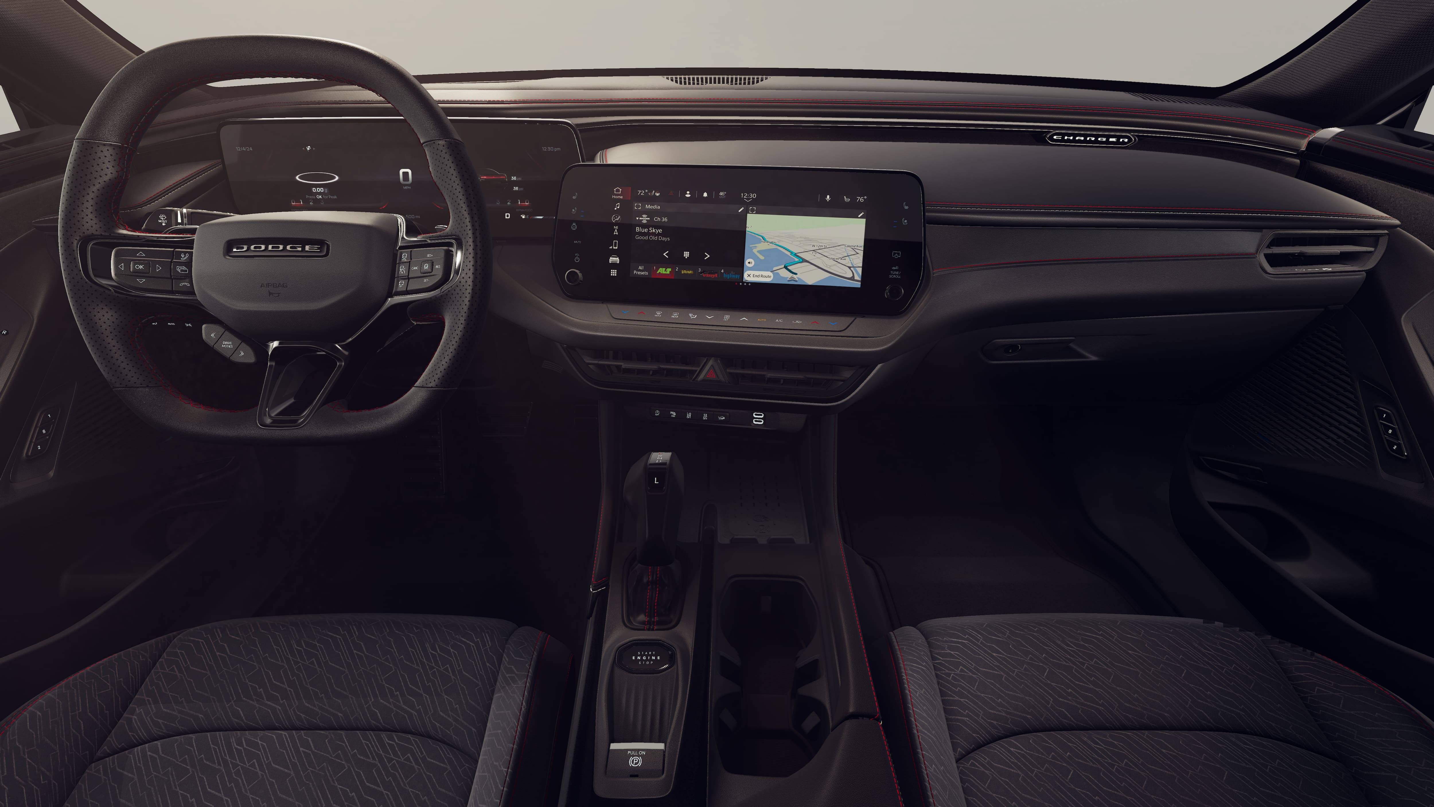 This 2026 Dodge Charger R/T Scat Pack comes nicely equipped with the following Blacktop Package (Dark Exterior Badging, Dual Rear Exhaust with Black Tips, and Wheels: 20 x 10 Dark Finish Aluminum), Highback Performance Seat Package (Heated Front Seats, Heated Second Row Seats, High Back Bucket Seats, Leather Performance Seats, Power 4-Way Driver Lumbar Adjust, Power 4-Way Passenger Lumbar Adjust, Power Adjust 12-Way Driver Seat, Power Adjust 12-Way Front Passenger Seat, and Ventilated Front Seats), Quick Order Package 22B Scat Pack Plus (16 Color Driver Display, 2-Way Manual Adjust Front Head Restraints, 2-Way Power Driver Lumbar Adjust, 4G LTE Wi-Fi Hot Spot, 8-Way Power Driver Seat Adjust, 800 Amp Maintenance Free Battery, Alexa Built-in, Attitude Adjustment Lighting, Automatic High-Beam Headlamp Control, Black Color Multi-Function Mirrors, Bright Pedals, Connected Travel and Traffic Services, Connectivity - US/Canada, Disassociated Touchscreen Display, Exterior Mirrors Logo Lamps, Exterior Mirrors with Memory, Front Cubby Bin with Light, Glove Box Lamp, GPS Navigation, HD Radio, Heads-Up Display, Heated Exterior Mirrors, Illuminated Door Pull Handles, Integrated Center Stack Radio, Integrated Voice Command with Bluetooth®, Leatherette Seats, LED Footwell Lighting, LED Map Pockets, Low Back Bucket Seats, Map-in-Cluster Display, Performance Pages, Power 2-Way Passenger Lumbar Adjust, Power Adjust 8-Way Front Passenger Seat, Power Adjust Mirrors, Power Hatch, Power Tilt/Telescope Steering Column, Power Windows Global Down w/Key Fob, Premium LED Low-High Reflective Headlamps, Radio, Driver Seat, Mirrors and Steering Column Memory, Radio: Uconnect 5 Navigation with 12.3 Display, Rain Sensitive Windshield Wipers, Rear Door Puddle Lamps, Surround View Camera System, Traffic Sign Information, Windshield Wiper De-Icer, Wireless Apple CarPlay, Wireless Charging Pad, and Wireless Google Android Auto), Wheel and Tire Package, 10 Speakers, 18 High Performance Alpine Speakers with Subwoofer, 4-Wheel Disc Brakes, ABS brakes, Active Noise Control System, Air Conditioning, Alloy wheels, AM/FM radio: SiriusXM w/360L, Apple CarPlay/Android Auto, Auto-dimming Rear-View mirror, Automatic temperature control, Black Seats, Brake assist, Bumpers: body-color, Compass, Delay-off headlights, Driver door bin, Driver vanity mirror, Dual front impact airbags, Dual front side impact airbags, Electronic Stability Control, Emergency communication system: Dodge Connect, Four wheel independent suspension, Front anti-roll bar, Front Bucket Seats, Front Center Armrest, Front dual zone A/C, Front License Plate Bracket, Front reading lights, Full Glass Roof, Fully automatic headlights, Garage door transmitter, Heated door mirrors, Heated front seats, Heated steering wheel, Illuminated entry, Knee airbag, Leather Shift Knob, Leatherette/Cloth Performance Seats, Low tire pressure warning, Manufacturer's Statement of Origin, Occupant sensing airbag, Outside temperature display, Overhead airbag, Overhead console, Panic alarm, ParkView Rear Back-Up Camera, Passenger door bin, Passenger vanity mirror, Power door mirrors, Power driver seat, Power steering, Power windows, Radio data system, Radio: Uconnect 5 with 12.3 Display, Rear anti-roll bar, Rear reading lights, Rear seat center armrest, Rear window defroster, Remote keyless entry, Security system, Speed control, Split folding rear seat, Spoiler, Sport steering wheel, Steering wheel mounted audio controls, Tachometer, Telescoping steering wheel, Tilt steering wheel, Traction control, Trip computer, Variably intermittent wipers, Wheels: 20 x 10 Aluminum, and Wheels: 20 x 11 Black Aluminum.