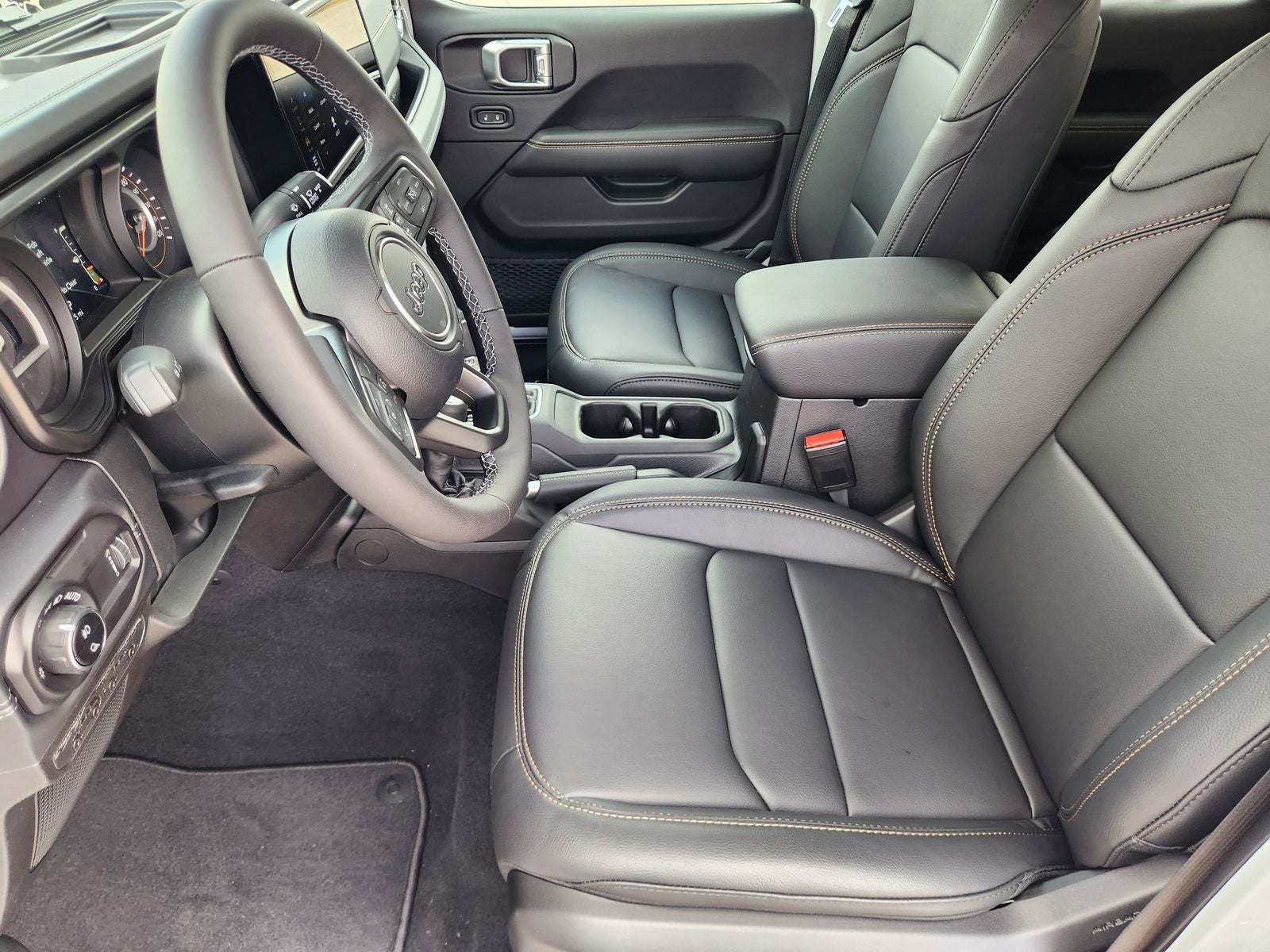 Step inside the Gladiator Texas Trail, and you'll be greeted by a wealth of premium features that elevate the driving experience. The leather-wrapped steering wheel, shift knob, and park brake handle provide a touch of refinement, while the heated front seats and heated steering wheel ensure maximum comfort in any weather. The Uconnect 5 infotainment system with a 12.3-inch display keeps you connected and entertained, seamlessly integrating with your smartphone via Apple CarPlay and Android Auto.