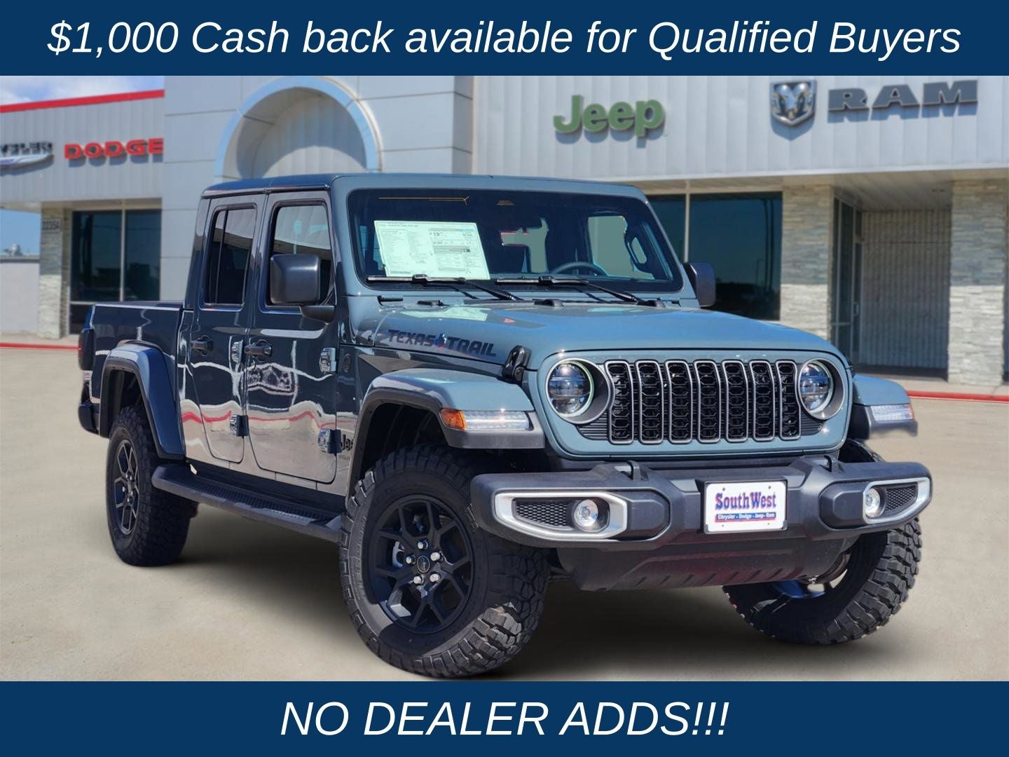 Experience the unparalleled capabilities of the 2026 Jeep Gladiator Texas Trail. Visit our showroom today and let our knowledgeable team guide you through this exceptional vehicle. We're confident you'll be impressed by its performance, features, and the exceptional value it offers. Take the first step towards your next great adventure and schedule a test drive today. Price includes: $1000 - 2026 National Retail Bonus Cash . Exp. 03/31/2026