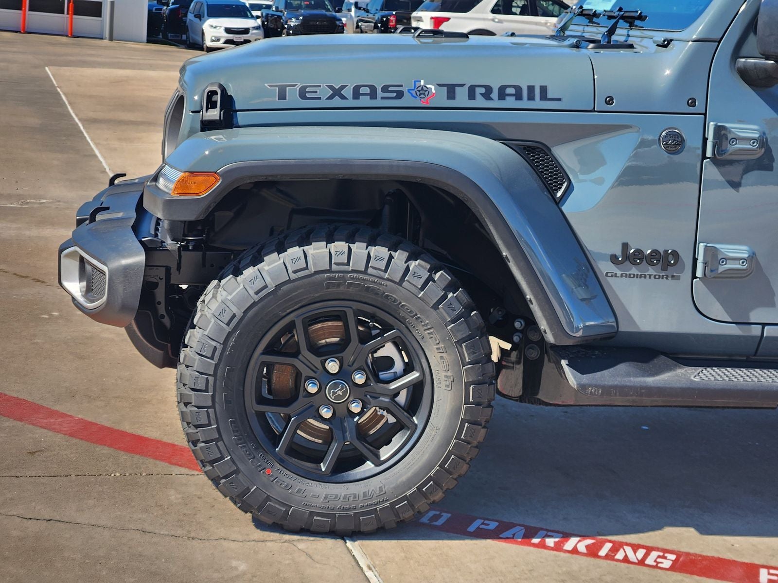 Designed to handle the toughest terrain, the Gladiator Texas Trail features a heavy-duty engine cooling system, Corning Gorilla Glass, and a class-leading towing capacity. The Willys suspension and 17-inch black steel wheels ensure a smooth and confident ride, no matter the conditions.