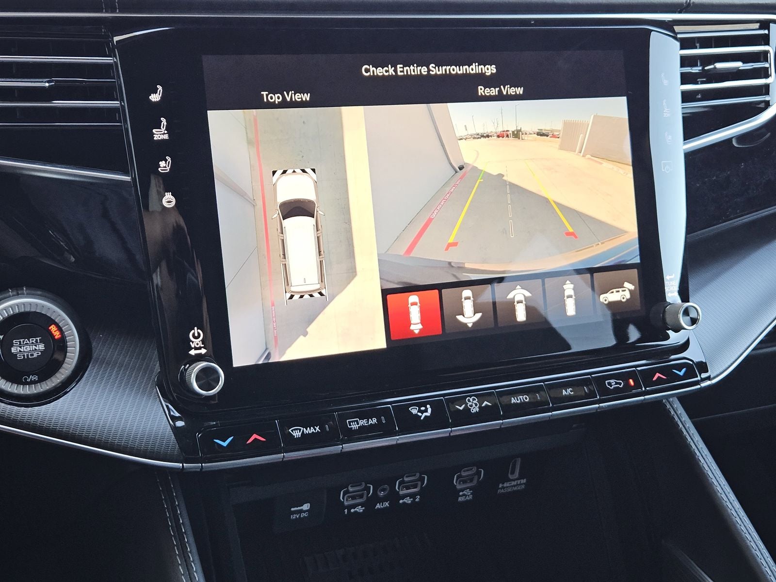 Advanced driver-assist technologies are seamlessly integrated, including Active Driving Assist, adaptive cruise control with stop-and-go, traffic sign recognition, surround-view camera monitoring, and intersection collision assist. Rear-seat entertainment with Amazon Fire TV built-in adds convenience and entertainment for longer trips, reinforcing the Grand Wagoneers role as a true full-size luxury SUV.