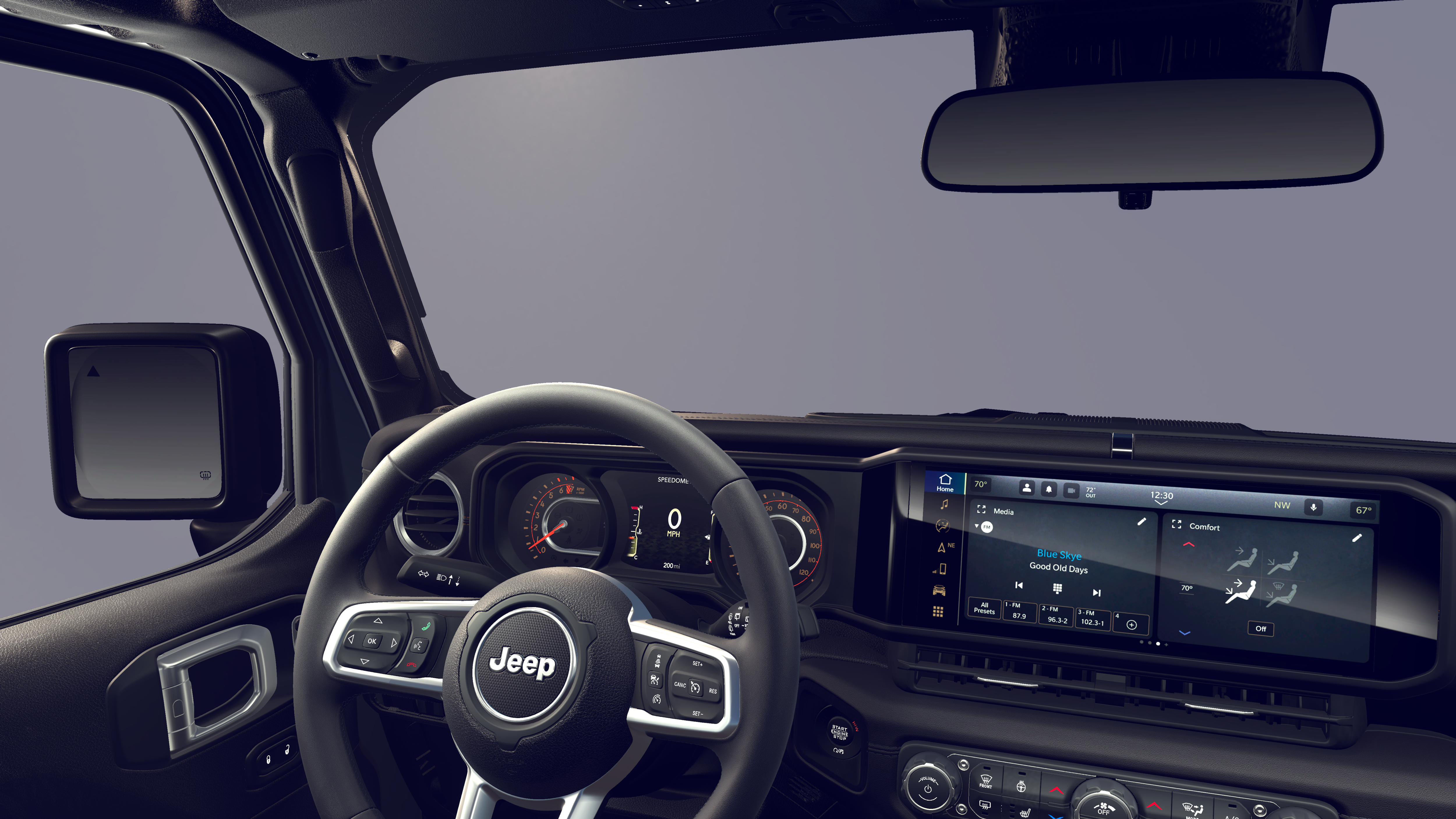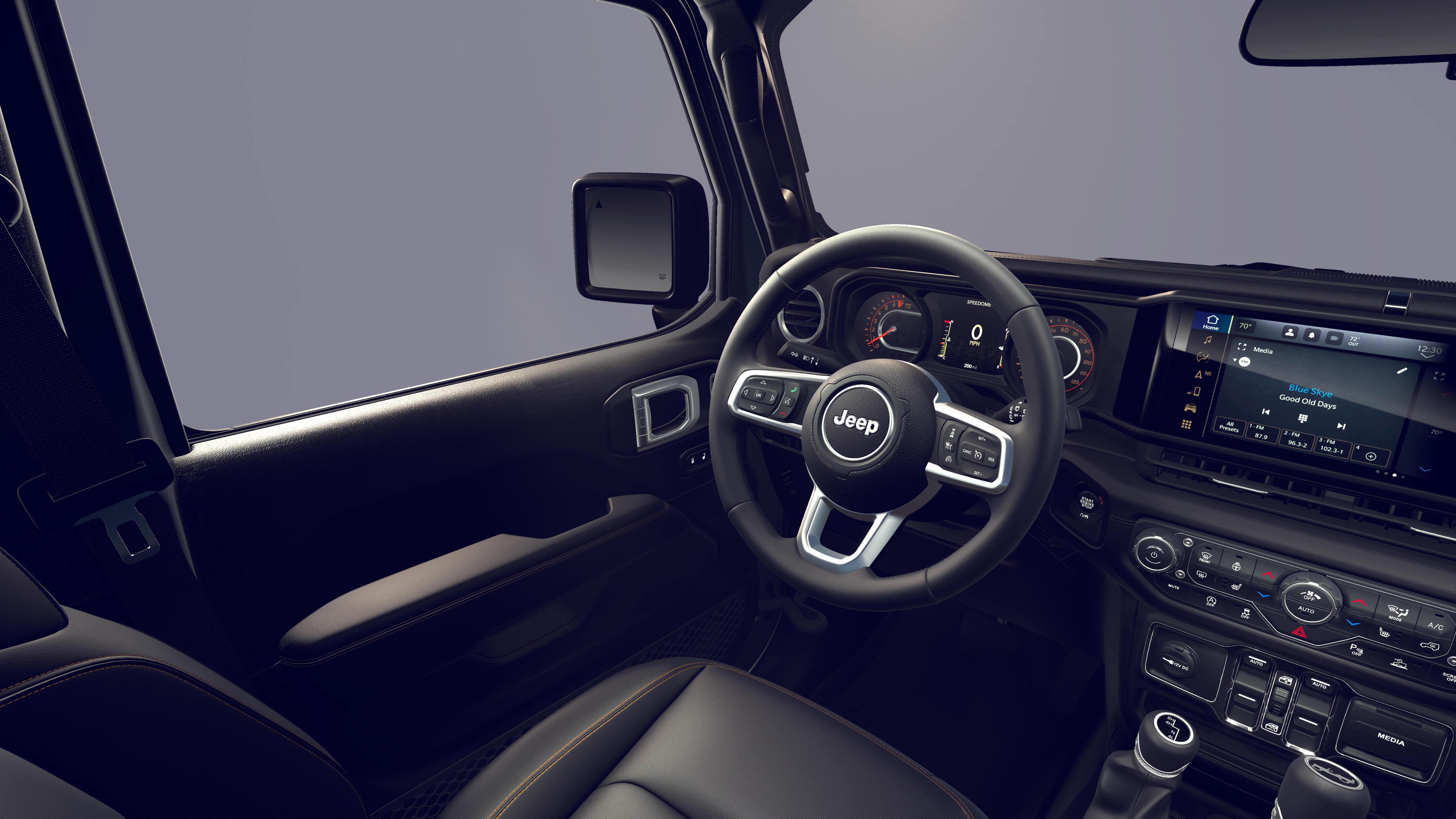- Sahara Popular Equipment Group: Includes Alpine Premium Audio System, Integrated Off-Road Camera, Blind Spot & Cross Path Detection, HD Radio, Rear View Auto Dim Mirror, Side Steps, Integrated Voice Command w/Bluetooth®, Uconnect 5 Nav w/12.3 Display, GPS Navigation, Auto High Beam Headlamp Control, Universal Garage Door Opener, Connected Travel & Traffic Services, ParkSense Rear Park Assist System