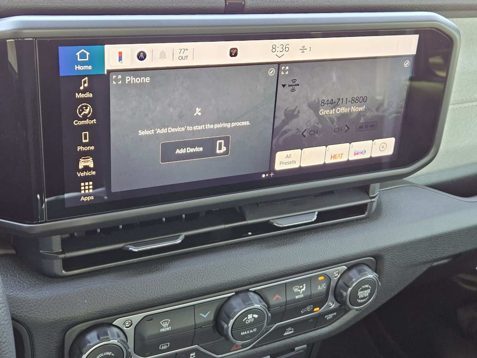 - Radio w/Seek-Scan, Clock, Speed Compensated Volume Control, Aux Audio Input Jack, Steering Wheel Controls, Voice Activation, Radio Data System and Uconnect External Memory Control