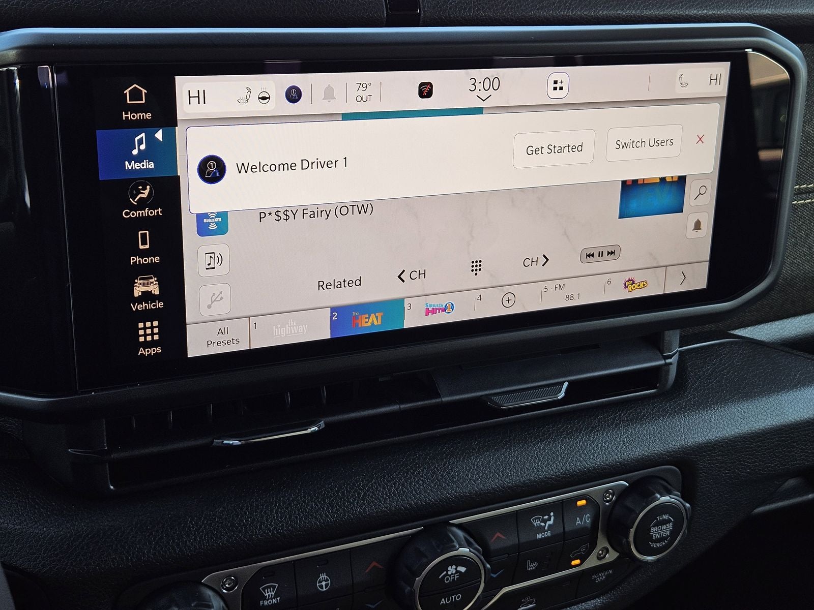 - Radio w/Seek-Scan, Clock, Speed Compensated Volume Control, Aux Audio Input Jack, Steering Wheel Controls, Voice Activation, Radio Data System and Uconnect External Memory Control