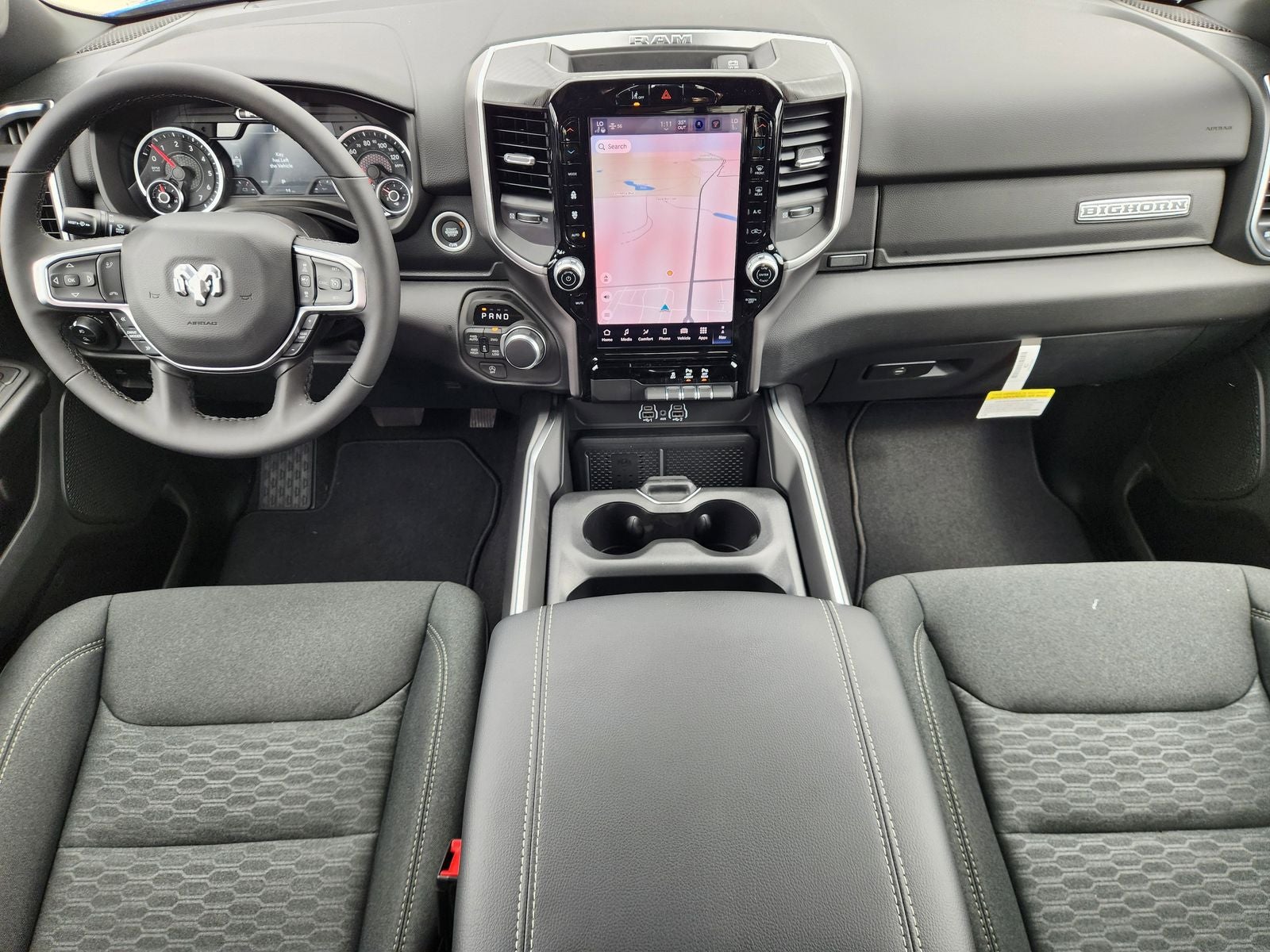 The interior of the Big Horn/Lone Star is designed with your comfort and convenience in mind. Sink into the plush, heated front seats and enjoy the premium Uconnect 5 infotainment system with its large 12-inch touchscreen display. Stay connected with Apple CarPlay, Android Auto, and the available 4G LTE Wi-Fi hotspot. The 115V power outlet and 400W inverter provide the power you need to keep your devices charged and ready for the job.