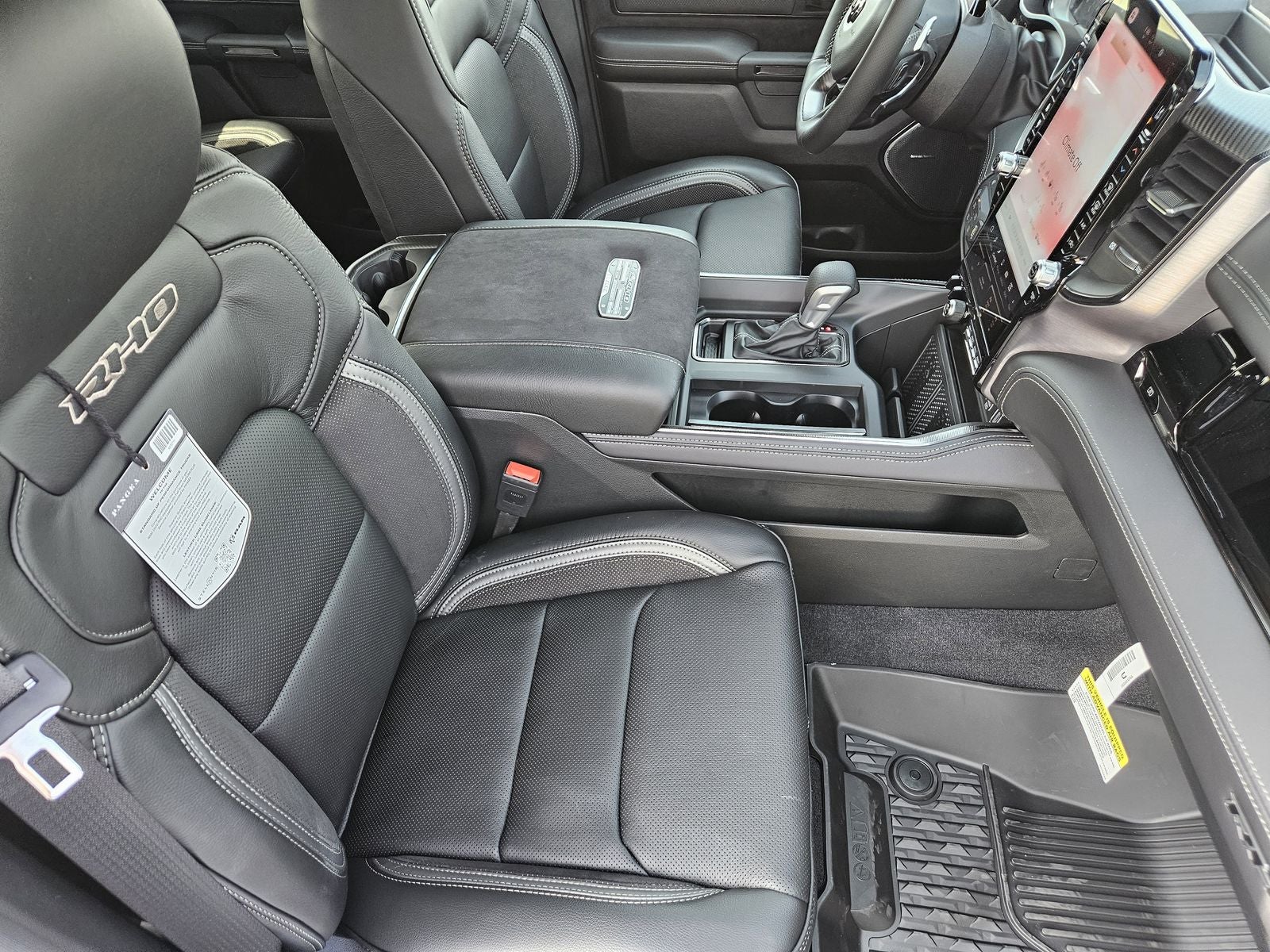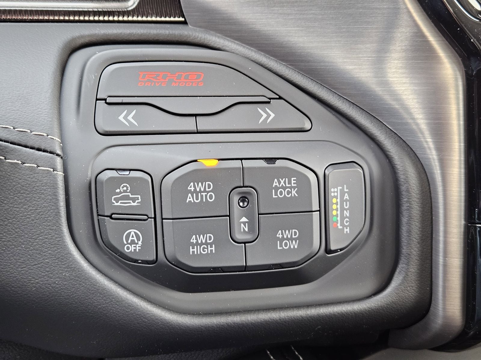 The RHO Level 1 Equipment Group transforms the cabin into a high-tech performance environment with memory settings, luxury trim panels, wrapped assist handles, and premium connectivity through Ram Connect.