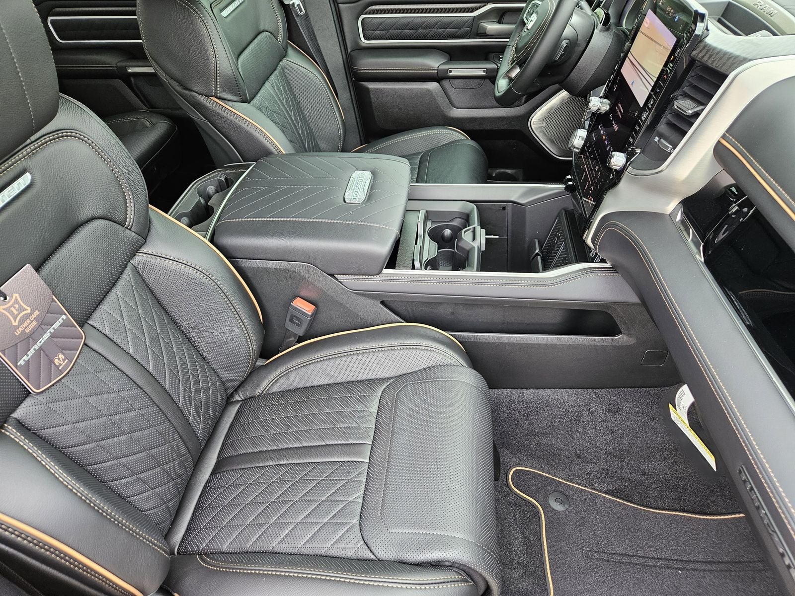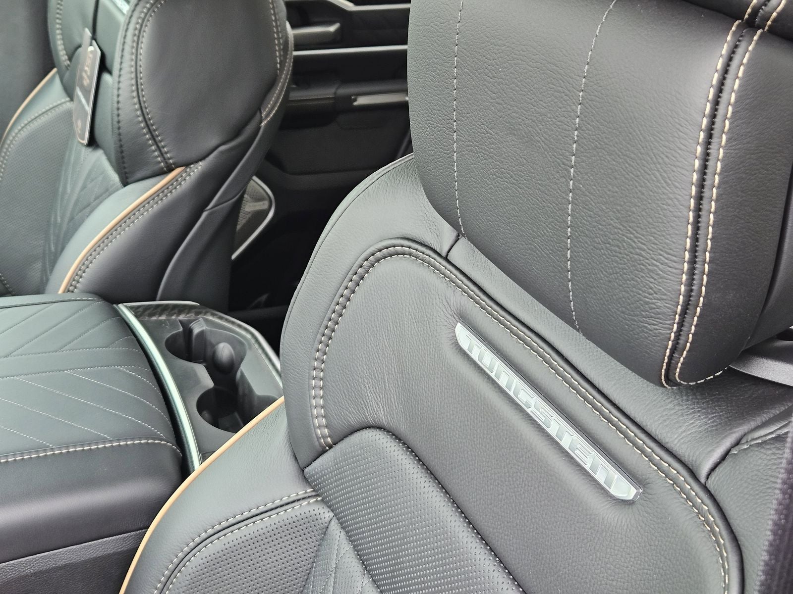 Technology is a centerpiece of the Tungsten trim. The 14.4-inch Uconnect 5 Nav touchscreen, Front Passenger Interactive Display, and 12-inch TFT digital cluster create an advanced and immersive cockpit. A Head-Up Display and Digital Rear-View Mirror further enhance visibility and driver awareness. The 23-speaker Klipsch Reference Premiere Sound System delivers studio-quality audio throughout the cabin, complemented by dual wireless charging pads and Ram Connect services.