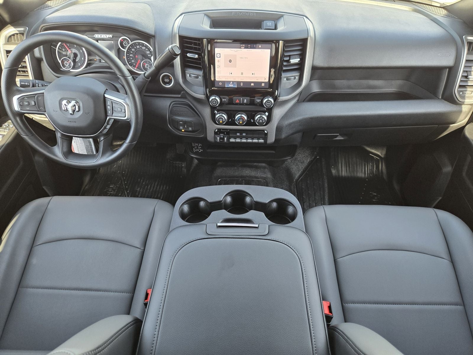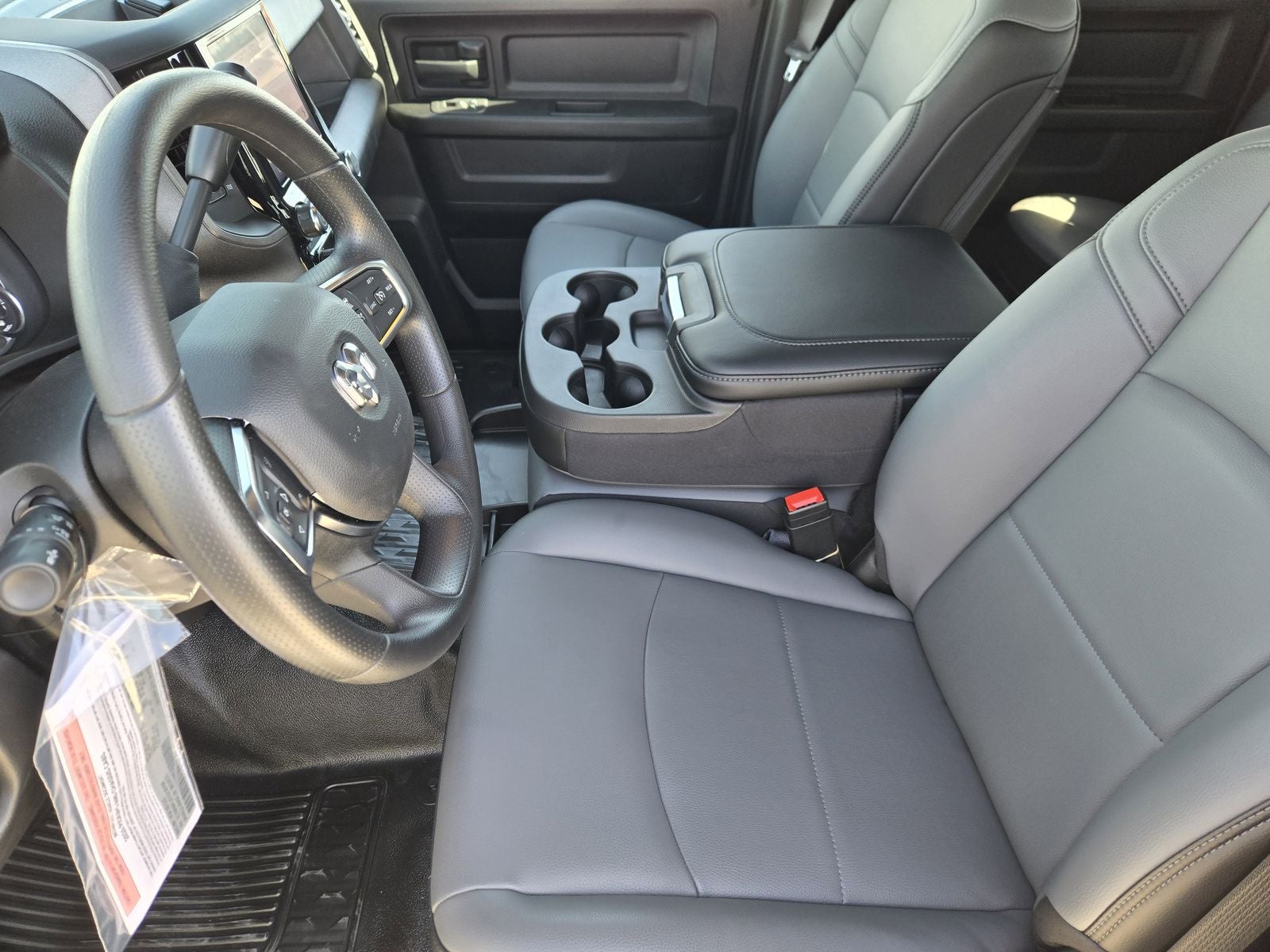 Inside, the Tradesman cabin is designed for durability and ease of use, featuring a heavy-duty vinyl 40/20/40 split bench seat, black vinyl flooring, air conditioning, and Uconnect 5 with an 8.4-inch touchscreen. Advanced safety features such as Adaptive Cruise Control with Stop, Full-Speed Forward Collision Warning with Pedestrian and Cyclist Emergency Braking, and ParkView rear back-up camera add confidence in busy work environments.