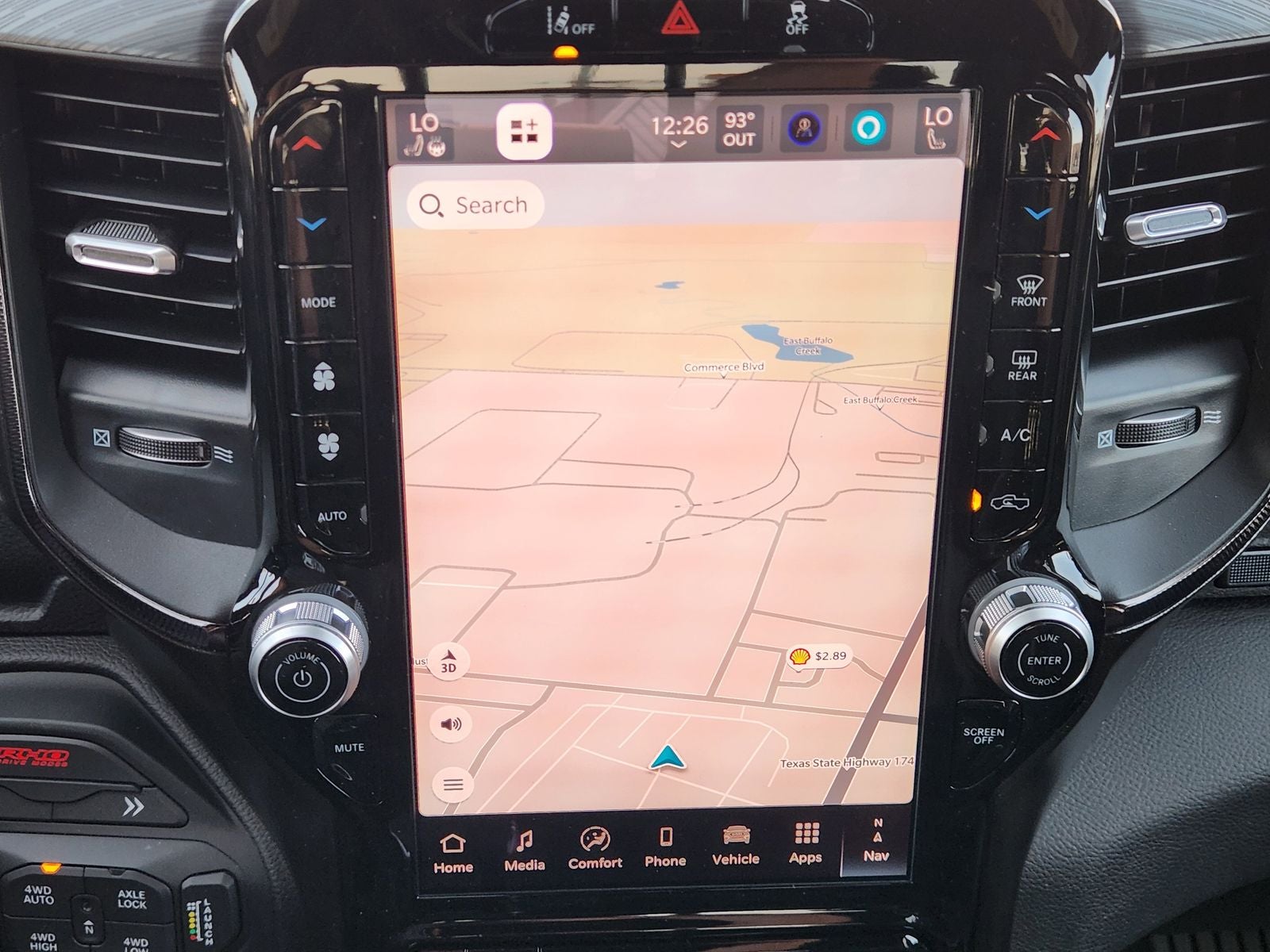 The interior of this Ram 1500 RHO is equally impressive, featuring a stunning 12.0 Uconnect 5 Navigation display, 10 premium speakers, and a host of advanced connectivity features, including Apple CarPlay, Android Auto, and a 4G LTE Wi-Fi hotspot. The leather-trimmed bucket seats are both comfortable and supportive, while the heated steering wheel and dual-zone automatic climate control ensure a personalized driving experience.
