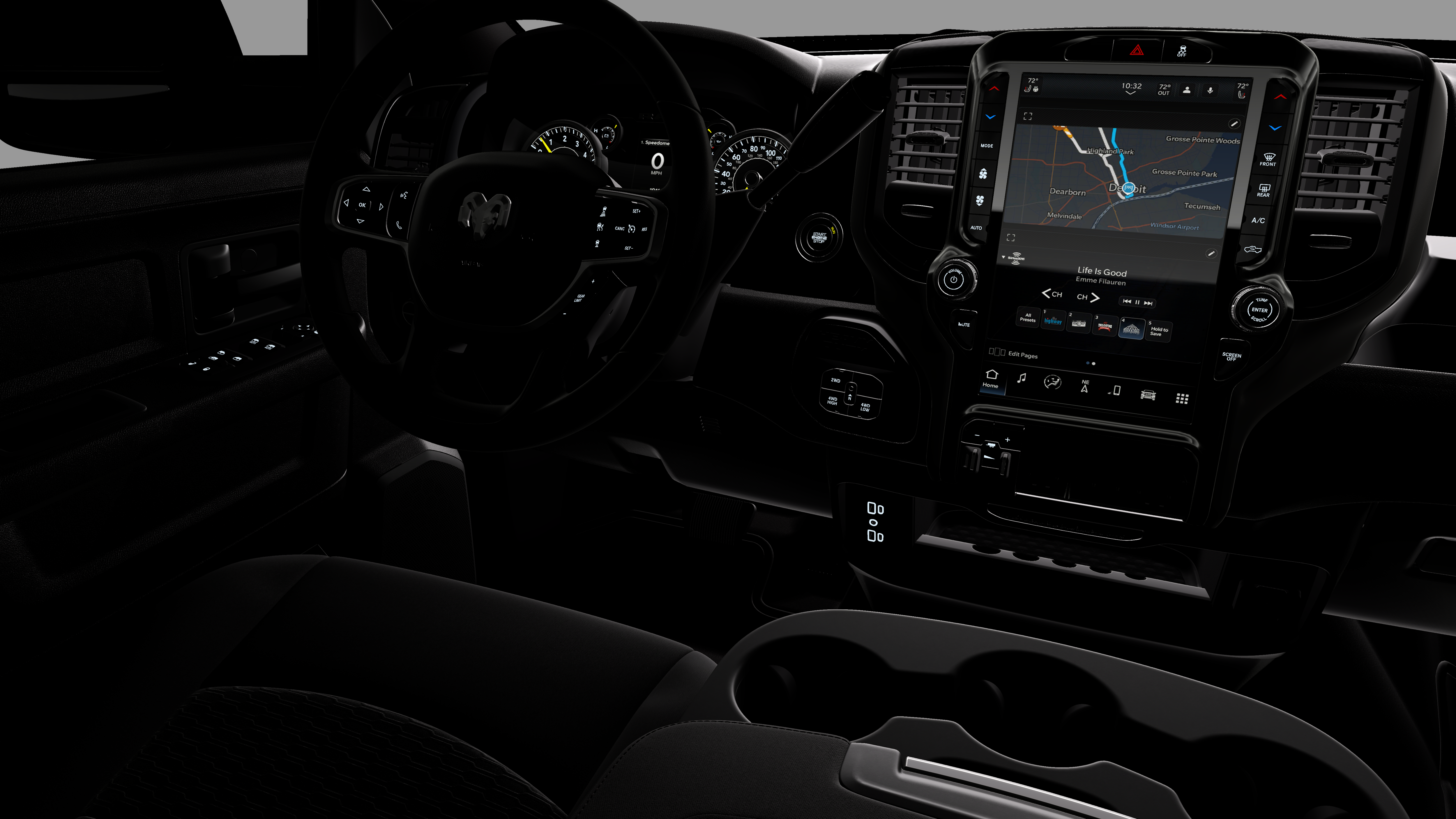 - Radio w/Seek-Scan, Clock, Speed Compensated Volume Control, Aux Audio Input Jack, Voice Activation, Radio Data System and Uconnect External Memory Control