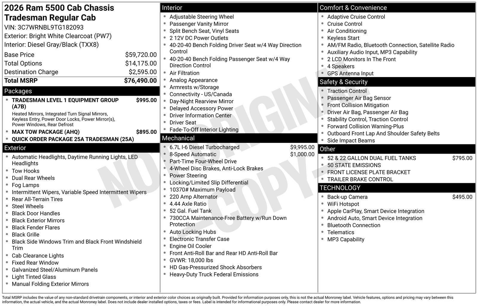 Don't settle for less – elevate your worksite with the 2026 Ram 5500HD Tradesman. Visit our showroom today and let our knowledgeable team help you discover the perfect truck for your needs. We're committed to providing exceptional service and ensuring you drive away in the vehicle that's right for you. Price includes: $2500 - 2026 National Bonus Cash . Exp. 02/02/2026