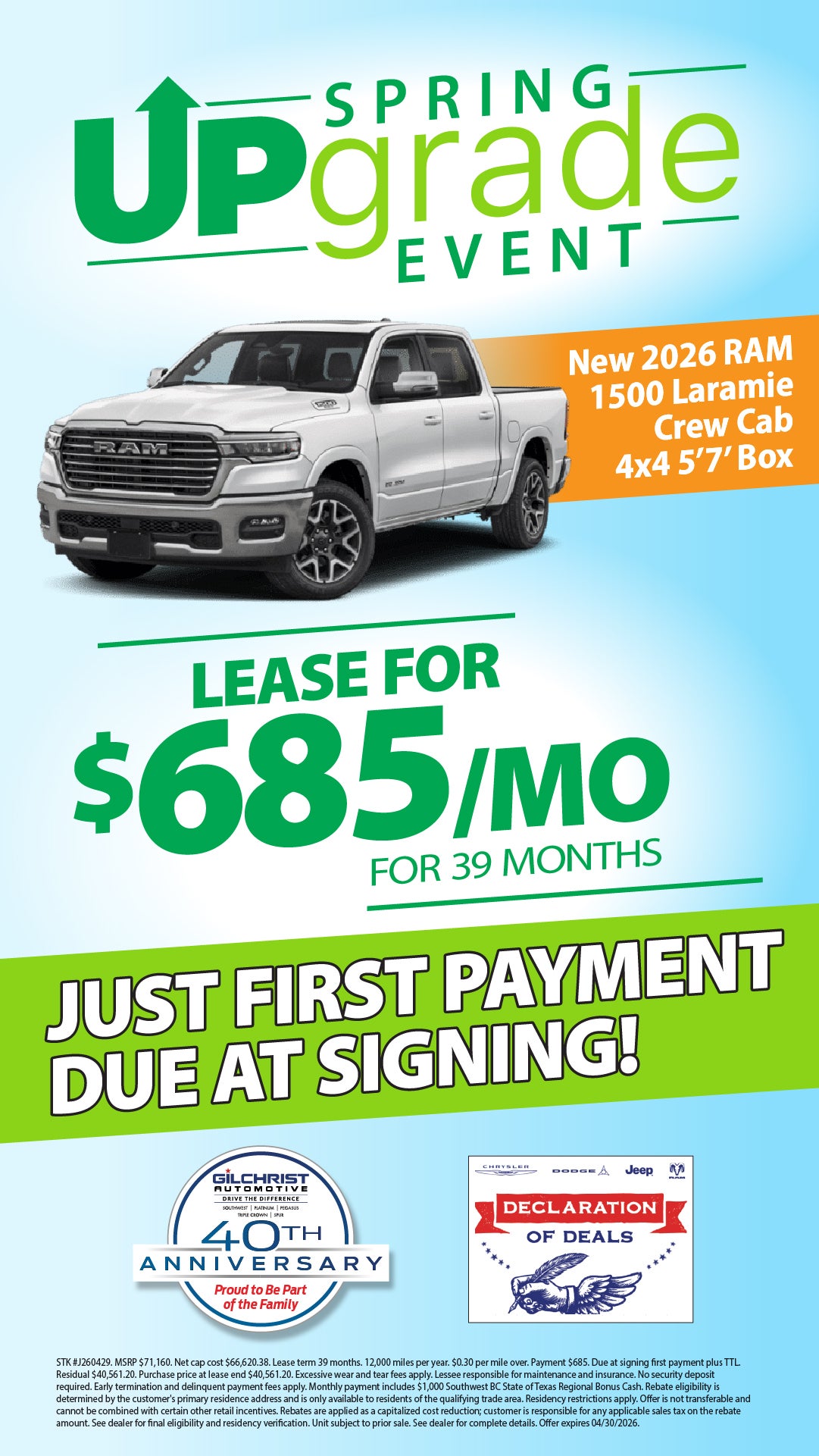 Just your first payment down during the Spring Upgrade Event!