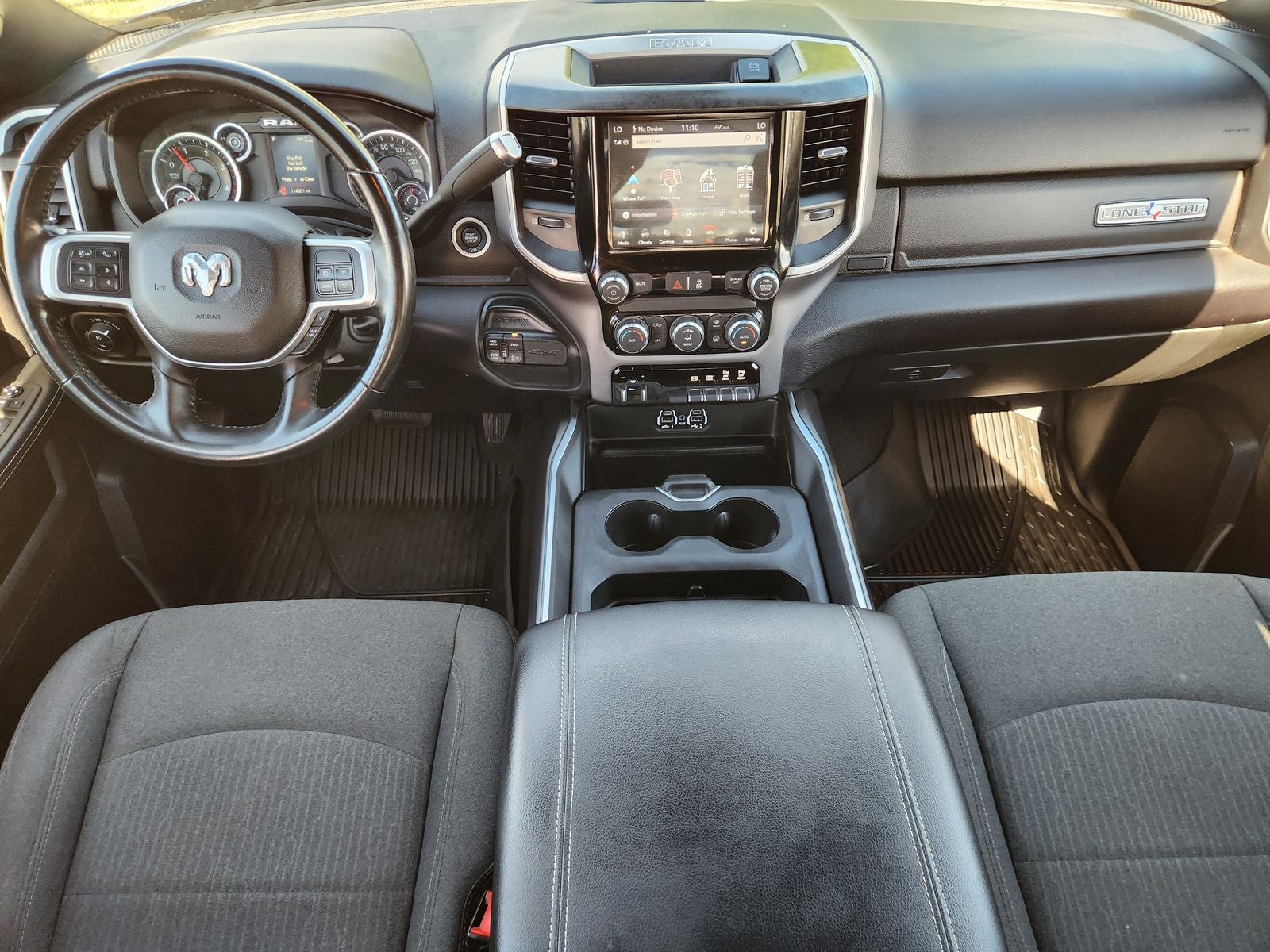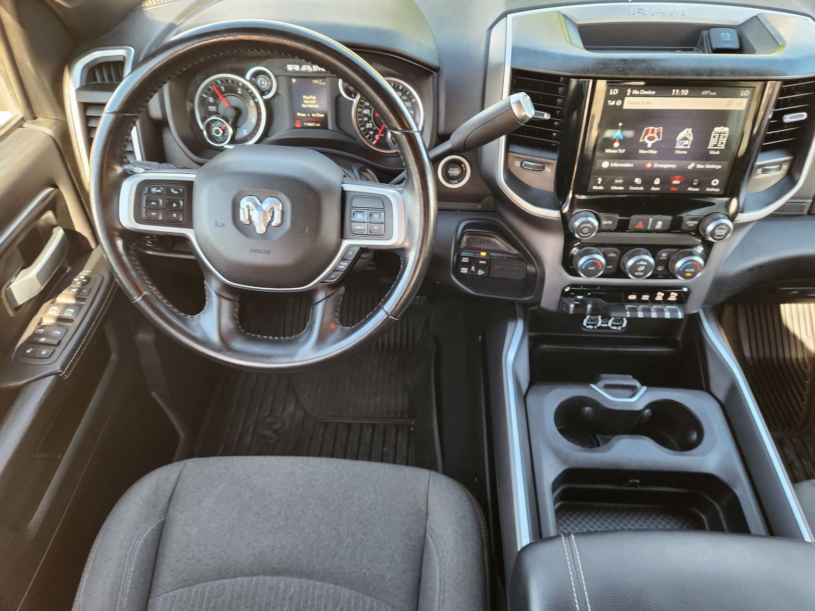 The cabin of the Big Horn is equally impressive, with premium cloth bucket seats, a power-adjustable driver's seat, and a folding flat load floor for added versatility. Stay connected on the go with the available 4G LTE Wi-Fi hotspot and Apple CarPlay integration. And with the remote start system, you can have your Ram 2500 ready and waiting, no matter the weather.
